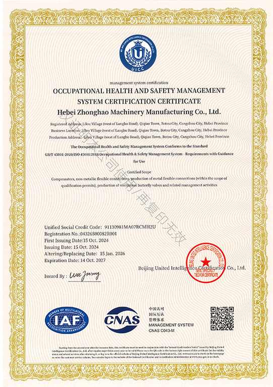 中浩機械職業健康安全管理體係認證證書 英文-河北中浩機械製造有限公司