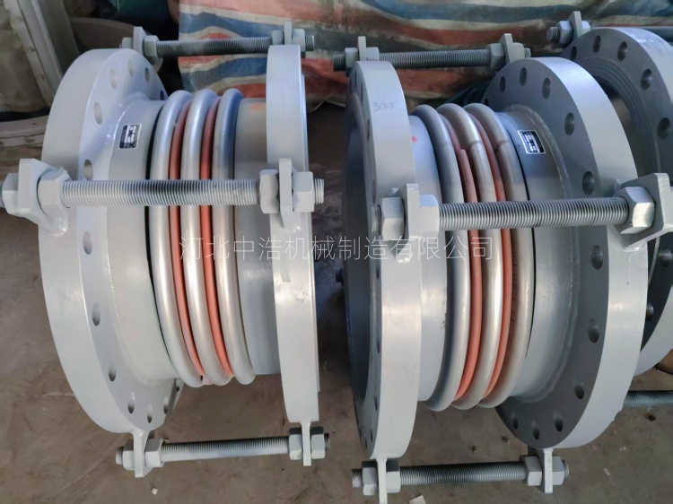 其次根據口徑大小選擇承壓環剛度需求和受力均勻性,一般按口徑分級匹配避免變形、密封失效,≤ 500mm口徑,選擇體積小、安裝便捷的單片式承壓環,無需額外加強即可滿足剛度需求,一般適合低中壓常規工況,而口徑在600-1200mm,一(yi)般(ban)選(xuan)用(yong)雙(shuang)片(pian)式(shi)承(cheng)壓(ya)環(huan)再(zai)加(jia)加(jia)強(qiang)筋(jin),雙(shuang)片(pian)結(jie)構(gou)可(ke)以(yi)均(jun)勻(yun)分(fen)散(san)壓(ya)力(li),而(er)加(jia)強(qiang)筋(jin)可(ke)提(ti)高(gao)整(zheng)體(ti)抗(kang)曲(qu)撓(nao)能(neng)力(li),中(zhong)高(gao)壓(ya)多(duo)層(ceng)波(bo)紋(wen)工(gong)況(kuang)常(chang)用(yong)。而(er)口(kou)徑(jing)大(da)於(yu)1400mm多用多片式承壓環加上環形加強板,多片組合增強整體承載能力,環形加強板防止邊緣變形,一般高壓、位移_大、頻繁波紋工況常用。